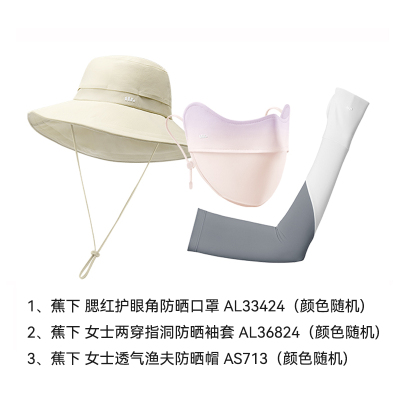 蕉下(BENEUNDER)防晒套装 护眼角防晒口罩+女士两穿指洞防晒袖套+女士透气渔夫防晒帽(产品颜色随机)