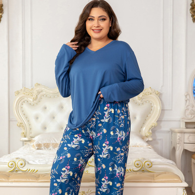 2025年新款TEMU肥大大码女士长袖长裤睡衣套装