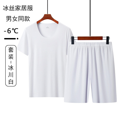 情侣睡衣夏季男士女士冰丝家居服套装简约宽松休闲户外运动套装