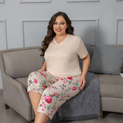 2025新款TEMU短袖七分裤加大加肥女士睡衣套装