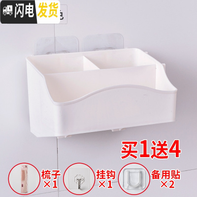 三维工匠卫生间吸壁式牙刷架壁挂式洗漱套装牙刷杯牙刷置物架化妆品收纳盒 三格白色(送梳子/挂钩/备用贴)
