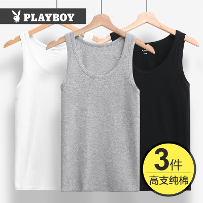 花花公子男士纯棉白色紧身背心内穿健身运动跨栏无痕打底男式汗衫
