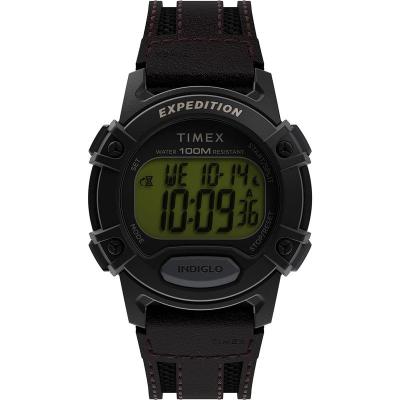 TIMEX天美时多功能防水计时器男款户外运动石英表毫米棕色皮质表