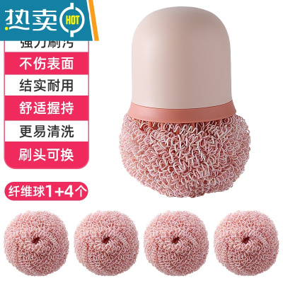敬平纳米球清洁球钢丝球刷不掉丝可拆卸去污不伤锅柄刷洗锅刷器 清洁球+替换装(四个装)刷子