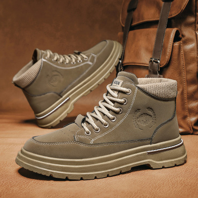 高帮马丁靴中筒靴超纤男士时尚百搭大码工装靴子秋冬新款增高男鞋