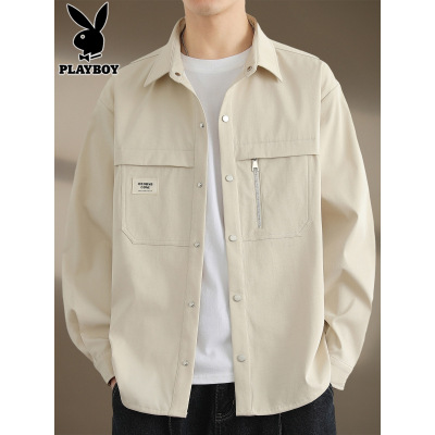 花花公子衬衫外套男士2025年秋季潮牌百搭工装上衣服休闲长袖衬衣