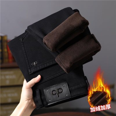 新款加绒牛仔裤男士商务百搭秋冬休闲耐磨水洗直筒裤子男