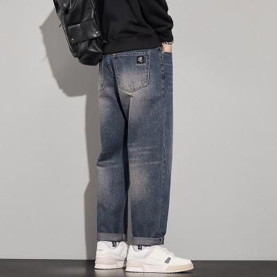 牛仔裤男士秋季宽松直筒潮牌男装新款休闲九分裤子男秋冬潮流
