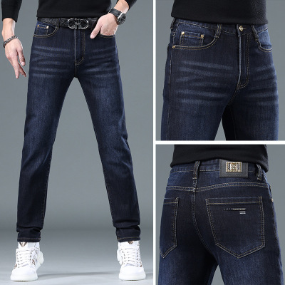 秋冬加绒保暖中年男士高端牛仔裤加厚商务长裤男弹力宽松抗皱裤子