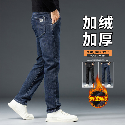 年冬季加绒弹力男士牛仔裤高端韩版宽松百搭修身休闲潮流长裤