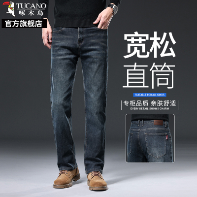 啄木鸟牛仔裤男士宽松直筒夏季2025新款休闲商务中年爸爸裤子K