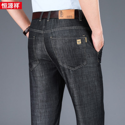 恒源祥中年男士牛仔裤夏季薄款宽松休闲长裤中老年爸爸弹力裤子