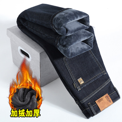 冬季加绒牛仔裤男品质宽松直筒舒适男裤中年爸爸男士高腰裤子