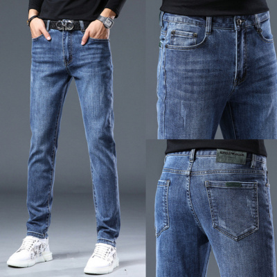 秋冬季欧版高端男士牛仔裤蓝色洗水男长裤修身小直脚弹力裤