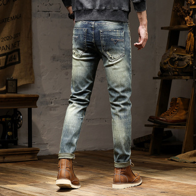 YANXU高端水洗轻奢欧洲站牛仔裤男士潮牌弹力修身小脚百搭男式裤子时尚