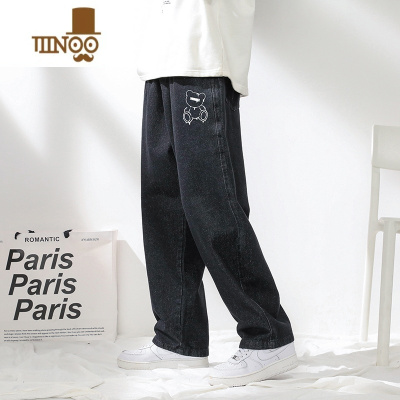 YANXU美式高街牛仔裤男宽松阔腿裤男士春季新款港风ins潮牌直筒长裤男