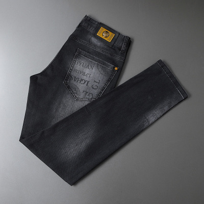 男款牛仔裤虎头黑色高端小脚裤男生轻奢印花弹力长裤男士_284114