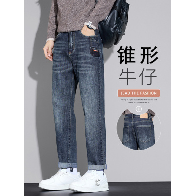 秋季新款锥形牛仔裤男士直筒宽松潮牌美式复古水洗休闲长裤子