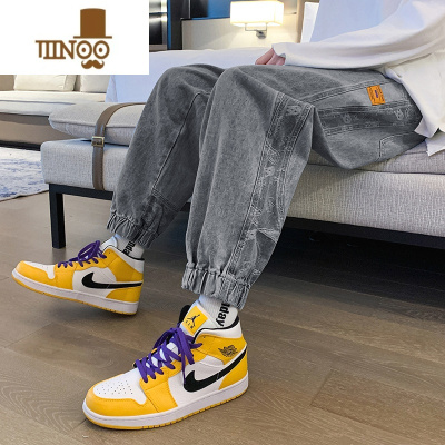 YANXU复古潮牌牛仔裤男士夏季薄款潮流宽松九分裤痞帅束脚休闲长裤子男