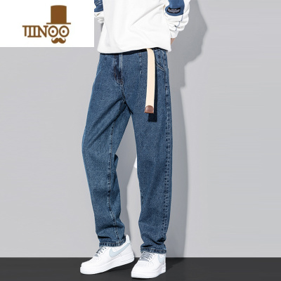 YANXU夏季蓝色牛仔裤男士潮牌直筒宽松潮流港风垂感百搭阔腿休闲长裤子