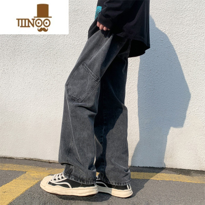 YANXU牛仔裤男士直筒宽松美式高街潮牌男生垂感工装阔腿休闲长裤子男款