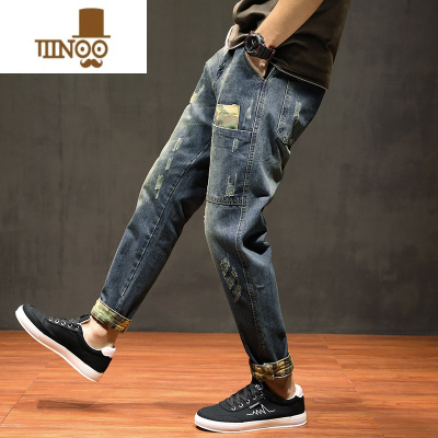 YANXU夏季潮牌直筒休闲牛仔裤男宽松大码男款锥形小脚男士九分哈伦裤子