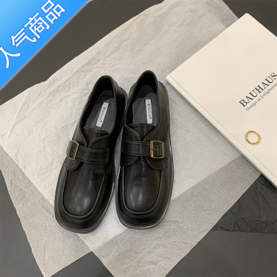 SUNTEK英伦风小皮鞋女2022年秋款韩版复古文艺学生方头单鞋女平底乐福鞋