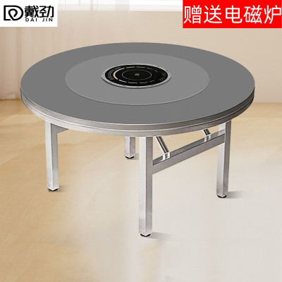 戴劲不锈钢内置转盘餐桌电磁炉火锅桌折叠桌圆形饭店餐桌1.2米+0.8米转盘(平行电磁炉)