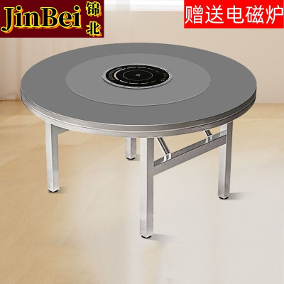 锦北不锈钢内置转盘餐桌电磁炉火锅桌折叠桌圆形饭店餐桌 1.8米+1.2米转盘(平行电磁炉)