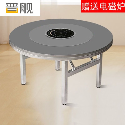 晋舰不锈钢内置转盘餐桌电磁炉火锅桌折叠桌圆形饭店餐桌1.2米+0.8米转盘(平行电磁炉)