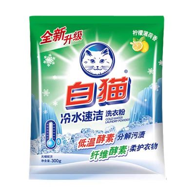 白猫洗衣粉300g冷水速洁系列手洗机洗去渍家用实惠装无磷柠檬薄荷香型