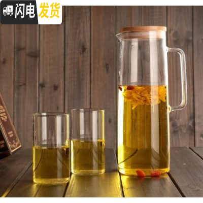 三维工匠家用耐热高温防爆玻璃瓶冷水壶大容量晾凉白开水杯冰箱冰水凉壶 凉水壶+2方杯