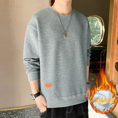 加绒卫衣男装秋冬季韩版潮牌纯色超柔绒保暖长袖打底衫提花布