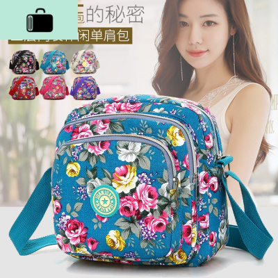 斜挎包女韩版帆布多格层新款运动百搭单肩休闲夏中年小跨包花布包NEW LAKE女斜挎包