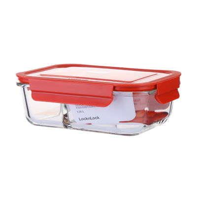 乐扣乐扣耐热玻璃保鲜盒冰箱微波炉烤箱便当盒密封便当盒餐盒红盖1.01L(两分隔)