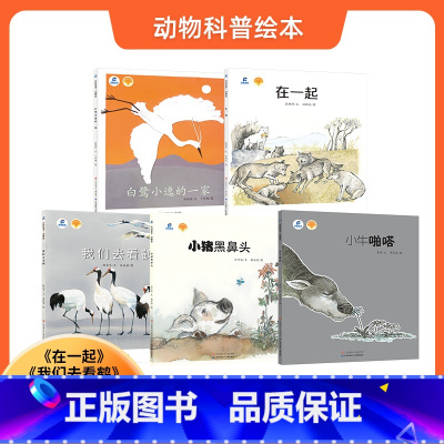 [正版]中国原创动物科普绘本共5本书我们去看鹤、小猪黑鼻头、小牛啪嗒、白鹭小逸的一家、在一起适合3-8岁让孩子从小和动