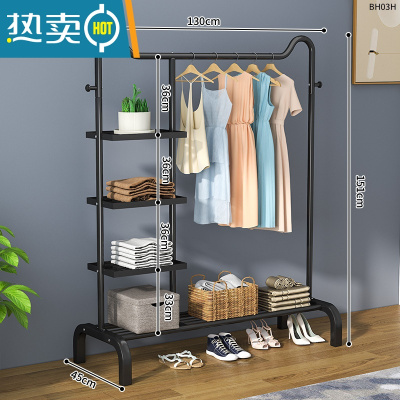 敬平衣架落地立式挂衣架卧室晾衣架家用简易单杆衣帽架衣架杆衣服挂架 130cm旗舰猫头款+尊贵黑[置物网+侧三层网]
