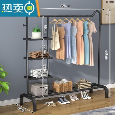 敬平衣架落地立式挂衣架卧室晾衣架家用简易单杆衣帽架衣架杆衣服挂架 150cm旗舰猫头款+尊贵黑[置物网+侧三层网]