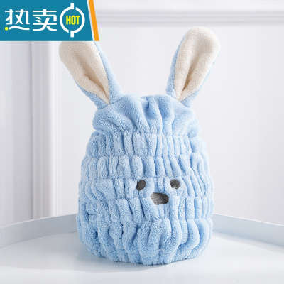 敬平干发帽女可爱兔耳超速干吸水儿童成人擦头发毛巾包头巾浴帽干发 蓝色