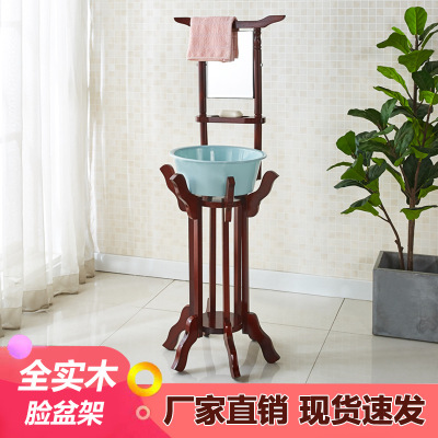 沃灏 脸盆架 实木洗脸盆架子 复古带镜子 置物架子