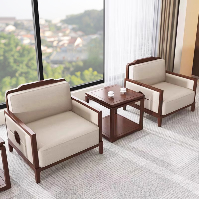 办公沙发会客室会议室接待贵宾区新中式商务洽谈办公单人沙发茶几