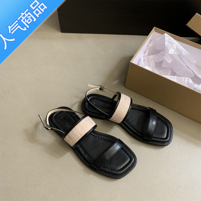 SUNTEK软底凉鞋女2023年新款韩版复古仙女度假小香风休闲平底沙滩罗马鞋
