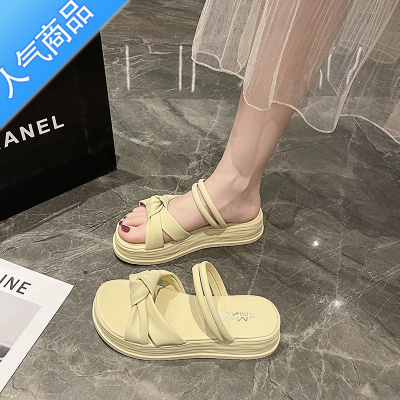 SUNTEK超火法式厚底凉拖鞋女夏外穿时尚高级感百搭2023新款平底外出凉鞋