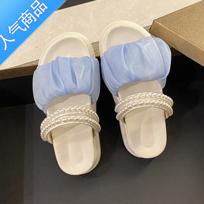 SUNTEK仙女风珍珠厚底凉拖鞋女夏外穿2023年新款法式高级感小众罗马凉鞋