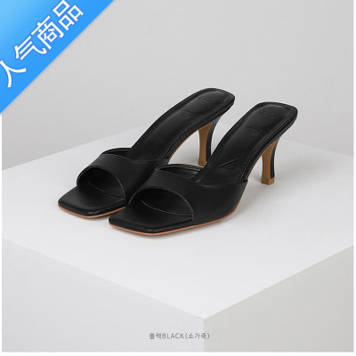 SUNTEK法式高跟凉鞋2023年新款夏季黑色百搭细跟方头露趾性感外穿拖鞋女