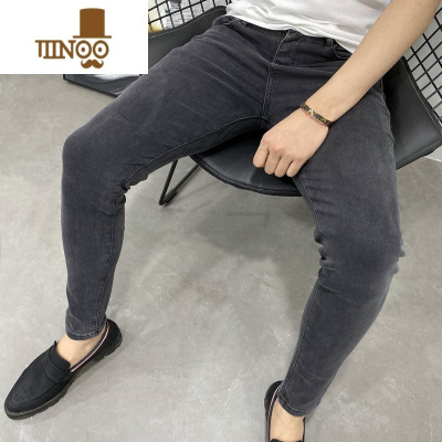 YANXU一条时尚百搭的灰色修身小脚牛仔长裤男士潮牌夏秋青年弹力中低腰