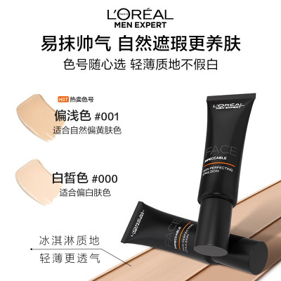 欧莱雅男士素颜霜自然肤色001 遮瑕保湿控油乳液提亮遮痘印护肤品七夕