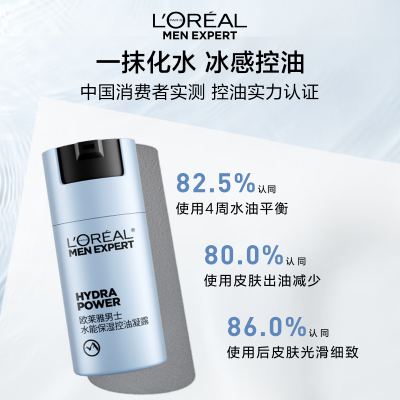 欧莱雅男士水能保湿控油凝露50ml补水舒缓干燥滋润乳液护肤品七夕