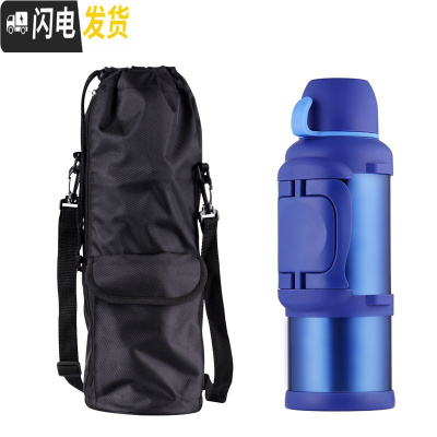 三维工匠真空保温水壶2000大容量家用保温壶不锈钢户外旅行热水瓶定制杯 1600蓝色带壶套