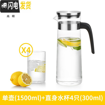 三维工匠可高温防爆玻璃大容量冷水壶 家用玻璃果汁凉水壶水杯套装 单壶+4个300直身水杯